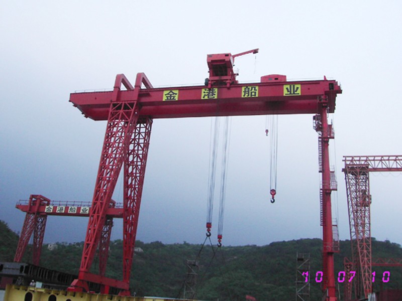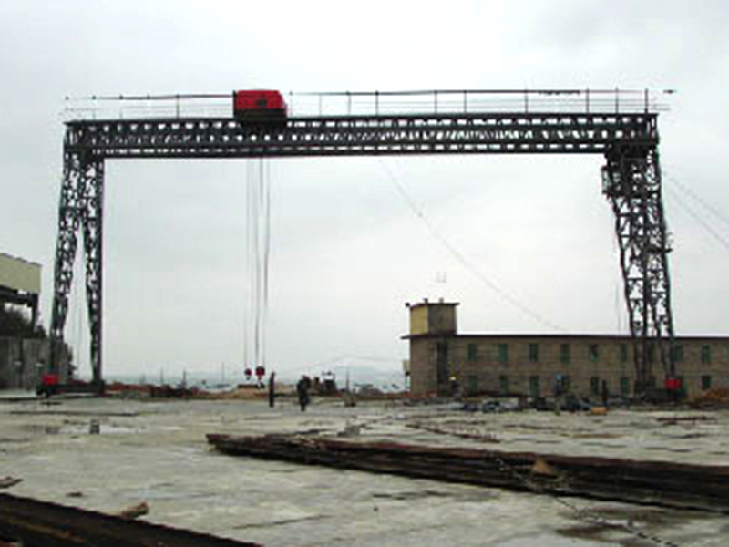 造船門式起重機(jī)適用于造船廠制作場所(船塢、船臺)進(jìn)行造船作業(yè),具有單吊、雙點抬吊、三點抬吊、空中翻轉(zhuǎn)吊件和輕載(≤50%滿載)快速升降、低風(fēng)速(≤8m/s)快速運(yùn)行等多種作業(yè)功能,在起重機(jī)整體吊裝